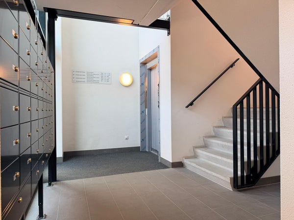 Ground floor: Entrance into the shared entrance hall, with access to the desired floor via the stairs.