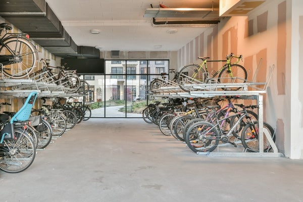 Ground Floor: You will be welcomed into a neat, central hall that immediately makes you feel at home. Here you have access to the stairwell, the elevators, a convenient bicycle shed, and a breathtaking courtyard garden, designed by renowned architect Piet Oudolf.