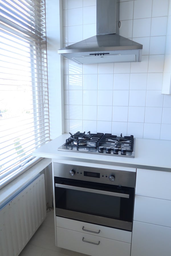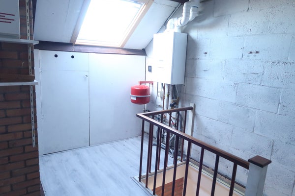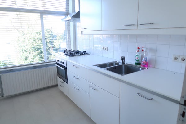 This spacious and bright apartment is located on the top two floors of a corner house and is accessed via a private entrance in the lower practice area. Residents can also use the garden belonging to the property. On the first floor, you find a large living room, previously two bedrooms, along with a bathroom equipped with a shower, toilet, and sink, and a modern kitchen. The top floor features a landing with a washer connection and a large bedroom with a sink. Utilities are shared with the practice area and there are sub-meters to monitor usage. Located in 'Oude Dorp' of Houten, the center, shops, train station, bus stop, childcare, and schools are all within walking distance.
