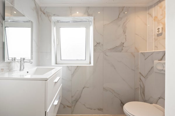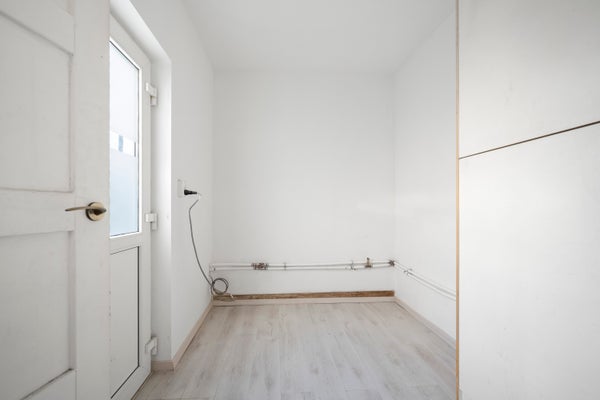 Ground floor: Entrance hall with separate toilet, spacious living room with open kitchen. Behind the kitchen is the utility room, which also provides access to the garden.