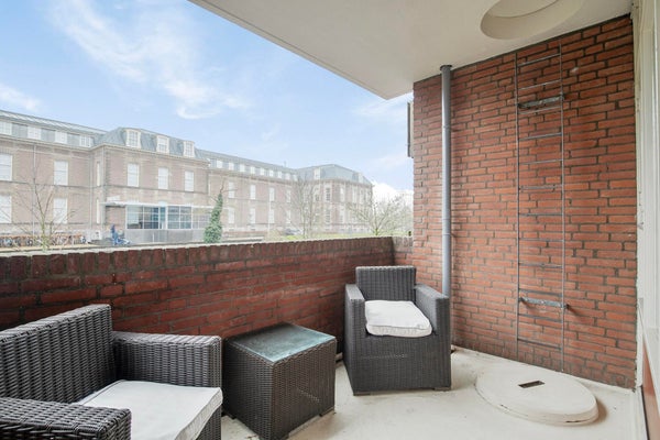 First floor: Gallery with meter cupboard. Entrance to the apartment, hallway with intercom system and a convenient storage cupboard with washing machine connection. Two spacious and bright bedrooms. Modern bathroom with bathtub, separate shower, and washbasin with vanity unit. Separate toilet. Spacious and bright living room with access to the balcony. Modern open-plan kitchen equipped with an induction hob with extractor, microwave, oven, and dishwasher. Sunny south-facing balcony with a beautiful view over the canal, greenery, and the impressive building of the National Museum of World Cultures.