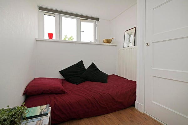 The top floor offers a flexible, multi-purpose space that can be used as an additional bedroom, workspace or lounge area, featuring two windows with wide open views across Leiden on both sides of the room.