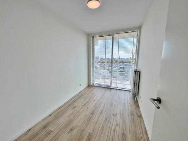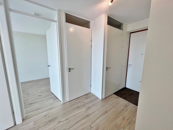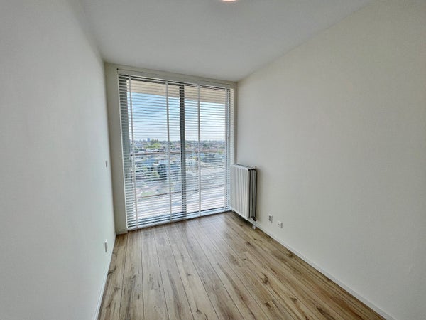 Located on the 7th floor with a spectacular view, you will find this modern and unfurnished 3-room (2 bedroom) apartment. All rooms overlook the center of Leiden. The spacious south-facing balcony with panoramic views is the entire width of the apartment. All rooms are finished with floor-to-ceiling windows and have direct access to the balcony via sliding doors.