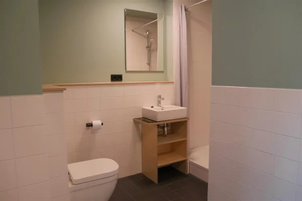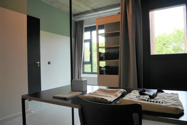 Lavishly furnished apartment with 2 bedrooms in the modern campus complex 'Wauwhaus'. The apartments is furnished with two large bedrooms (±14&16m2) each with a double bed (140x210), large clothing & storage cupboard, desk with chair, lounge sofa, own washbasin and high-speed internet. Additionally, you share a roomy livingroom with luxurious open kitchen (incl. built-in appliances), balcony and modern bathroom with a shower, a washbasin and toilet. The apartment can only be rented in its entirety and is located on the first floor. See the floor plan for the units location in the building.