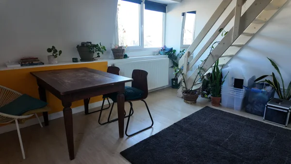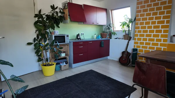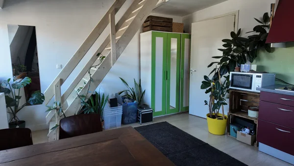 Nice apartment on the second floor. The apartment consists of a living room with open kitchen, a bathroom with shower, sink and toilet and on an open floor is the bedroom. The whole apartment has laminate floors. Rent includes the lease of a washing machine.