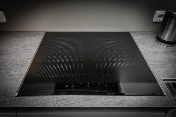 - Spacious living room with open luxury kitchen, including cutlery, crockery, and cookware