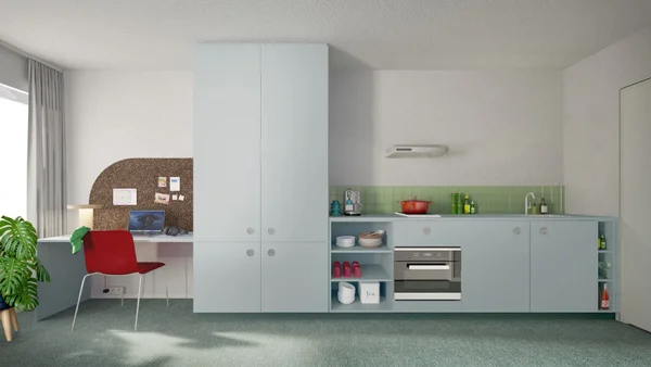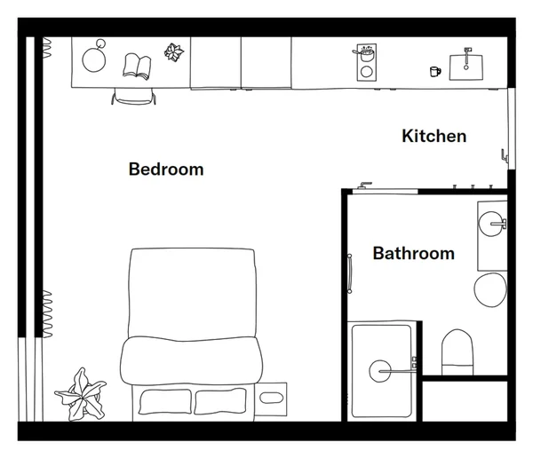 Fully furnished 'Single-XL' studio in the modernized campus complex The Ed. The studio features a double bed (140x200) with mattress, a luxury open kitchen (with built-in appliances), a XL bathroom with toilet, shower, and sink, a desk with chair, sufficient storage and wardrobes, and high-speed internet. The studio is located on the 1st floor (north side).