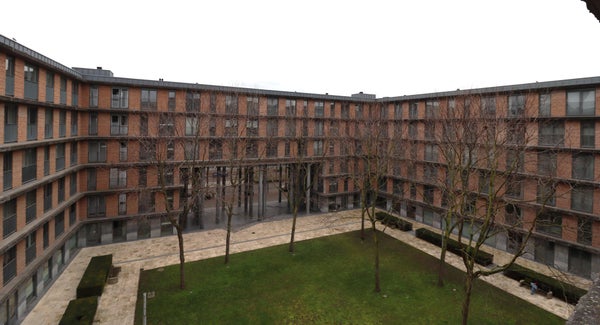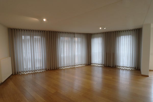 The entrance is sheltered on Bellefroidlunet. The communal hall with staircase and elevator takes you to the 5th floor. The spacious hallway (9.6 m²) provides access to the sunny living room (32 m²) with many windows. The semi-open kitchen (17 m²) is in a corner layout and is equipped with all modern appliances such as a dishwasher, a combination oven, a double sink, an induction hob, an extractor hood, and a refrigerator with a freezer compartment. Back in the hallway, you’ll find the 2 bedrooms (28 m² and 11.5 m², respectively). Both bedrooms overlook the beautifully landscaped inner garden. The tiled bathroom (6 m²) is equipped with a shower with glass walls, a bathtub, and a sink. Additionally, you’ll find the indoor storage room (2.5 m²), where the washing machine and dryer connections are located, along with the heat recovery ventilation (HRV) system. The guest toilet is next to the bathroom.