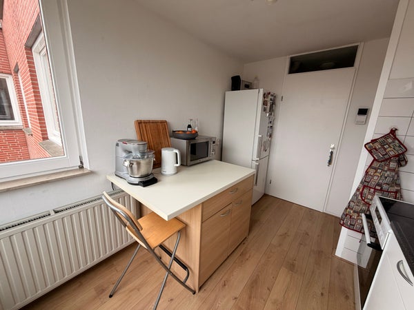 The apartment is located on the 3rd floor and offers a practical and comfortable layout. The living room provides access to the balcony and adjoins a semi-open kitchen, which is equipped with an oven, electric cooktop, extractor hood, and fridge-freezer combination. The apartment further features two spacious bedrooms, a well-maintained bathroom, a separate toilet and a separate laundry room with washing machine.