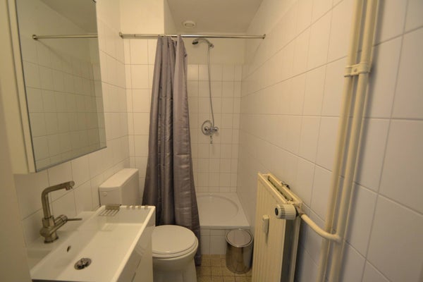 Through the common entrance you find the main door of the apartment. By the hall (3m²) you reach the living (18m²) with in the corner the kitchen equipped with combination oven, fridge, stove and hood.. The bedroom (10m²) is separate and is located at the back. In between the bathroom (3m²) with shower, washbasin and toilet. In the basement you will find common washroom with your own connection for the wash machine.