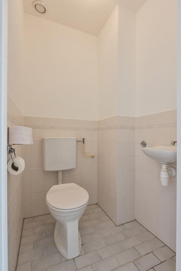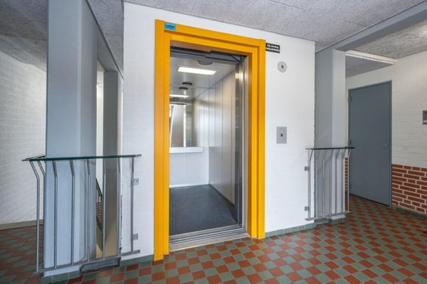 Floor: From the central hall/landing on the floor, there is access to the apartment. Spacious living room with semi-open kitchen. The kitchen is located at the rear of the apartment and offers a view of the green courtyard. Next to the kitchen is the utility room with laundry connections and the unit for mechanical ventilation. The living room adjoins the indoor balcony. The balcony faces south. The apartment further features 2 bedrooms, a bathroom, and a separate toilet. The bathroom is equipped with a walk-in shower and a sink.