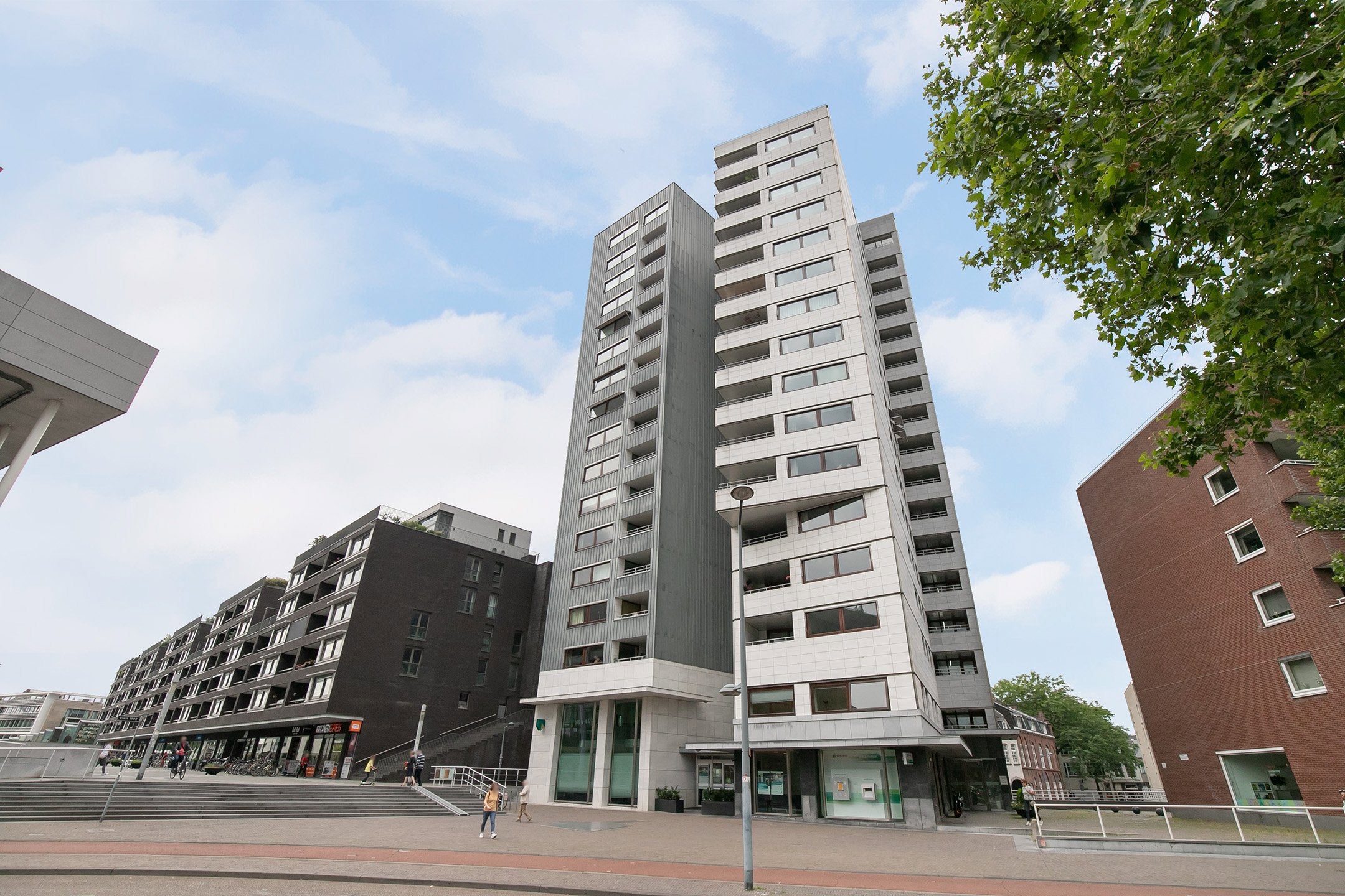 This apartment is located at the front of the Marmeren Toren. It features a living room with an open kitchen, a spacious loggia, and two bedrooms, facing southeast. Situated on the fifth floor, it has a living area of 120 m². The apartment is available now for a monthly rent of € 2170, plus service costs of € 90. A deposit of one or two months is required. Built in 2001, the property has an energy label A and is heated by district heating.