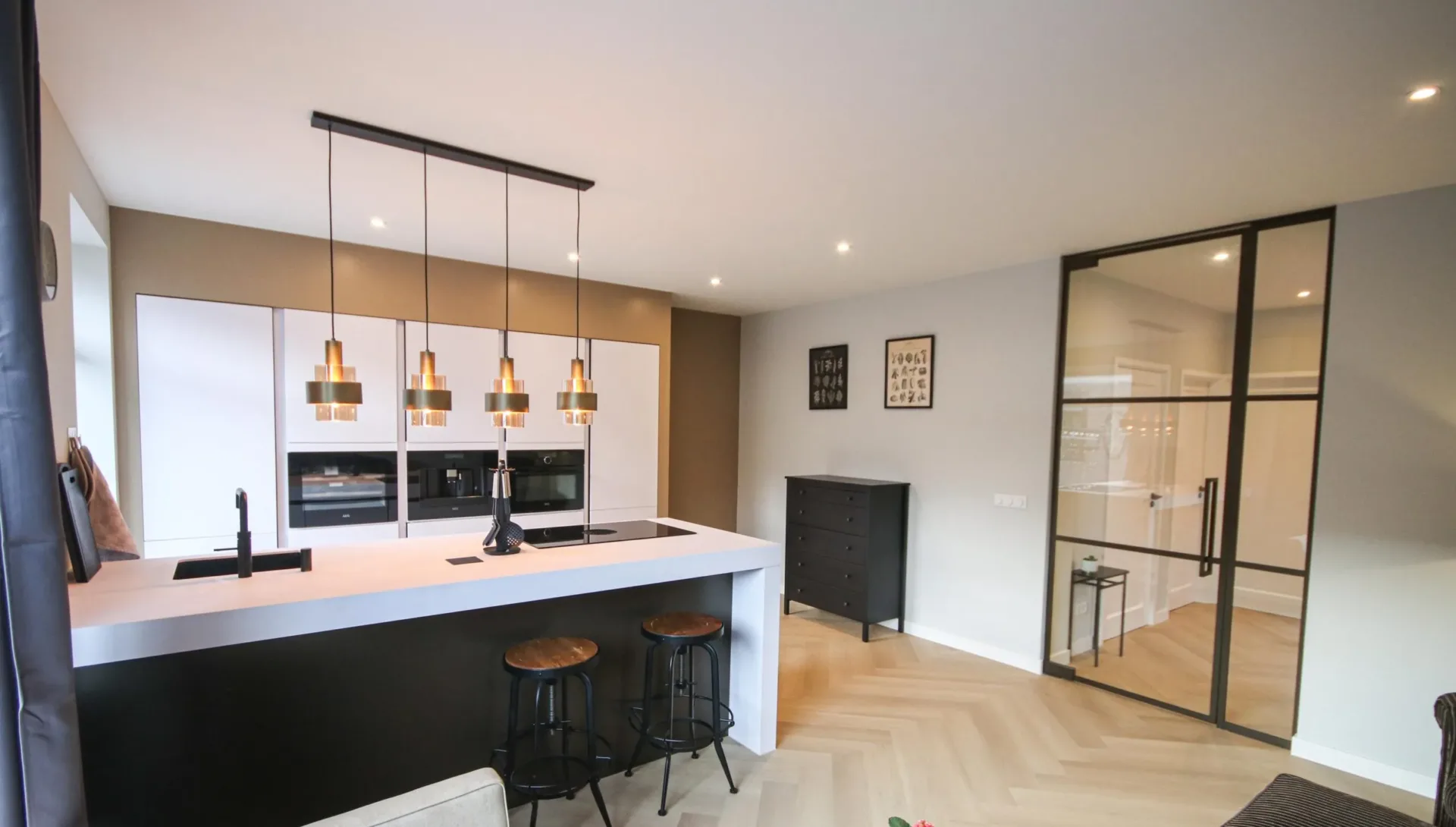 A rental apartment in the center of Monster will be available from April 1, 2026, in a small complex with a lift. On the ground floor, there's an intercom system with mailboxes and access to the utility rooms. On the second floor, the apartment boasts a spacious living room with large windows and wooden flooring, a bedroom of about 17 m2 with access to a sunny balcony, and a second bedroom/study of about 9 m2. The kitchen comes equipped with a gas stove and dishwasher. There’s a separate toilet, a fully tiled bathroom with a walk-in shower, and an indoor storage room. A 13 m2 roof terrace provides sun throughout the day. The rent is €1495, excluding gas, water, and electricity. The minimum rental period is 12 months, with selection criteria for tenants.