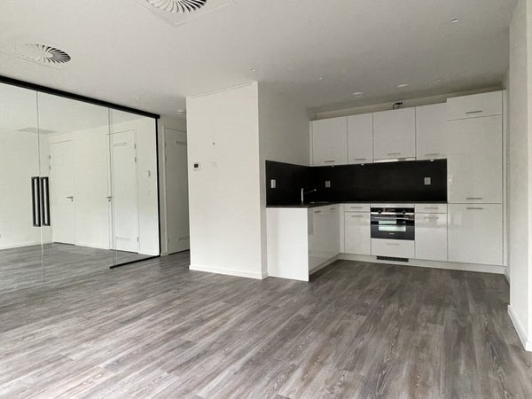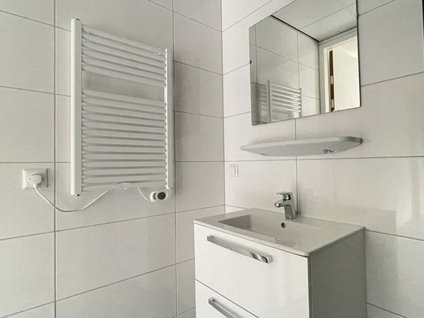 You are renting a fully furnished apartment. There is already a PVC floor, the walls are equipped with scan wallpaper, there are two curtain rails installed, one of which is already fitted with in-between curtains, and you don’t have to hang up any lamps because LED lighting is already installed in the ceilings. There is even thought of picture rails so you don’t have to drill holes yourself, what more do you want!