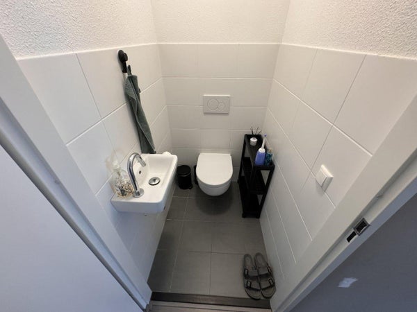 - (Partly) tiled toilet room with toilet and hand basin;