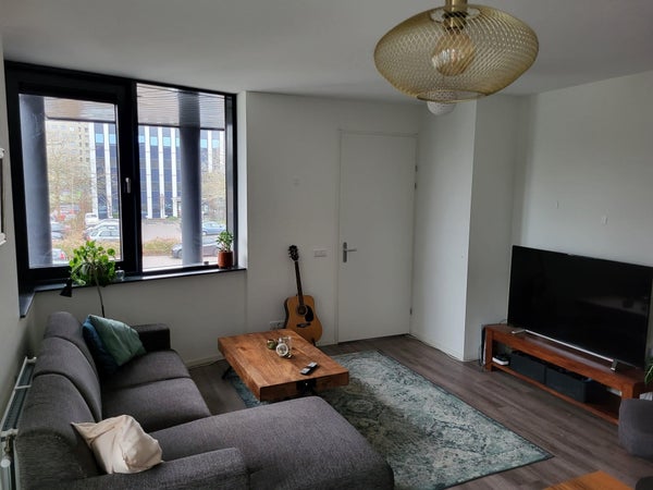 In the former office building on the Krijtwal one 2-room apartment of approximately 57 m2 with large balcony and private parking place will become available. Because of the large windows, this ready-to-move-in home has a lot of natural light, is equipped with a beautiful PVC laminate floor, new kitchen, bathroom and separate laundry room and toilet with fountain.