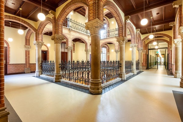 This unique loft is located in Canisiushof, a monumental and characteristic building in Nijmegen with historical details such as stained glass windows and an impressive entrance.