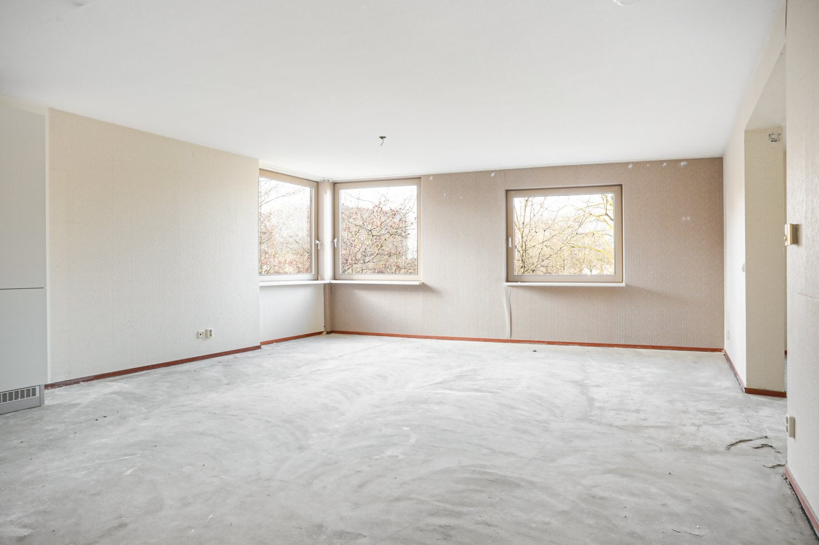 In the Grootland neighborhood of Nijmegen-South, near the Waal, three apartment buildings house a total of 104 rental apartments. The sizes range from 88 to 105 m2, with a few top apartments measuring 140 to 143 m2. Each complex features an underground parking garage with separately rented garage boxes, though some apartments only include a storage unit with no parking access. Access to the apartments is through central entrances and an elevator to the floors. There are six types of apartments, most with one or two bedrooms, while some have three bedrooms or even dining rooms. Each apartment includes a fully equipped kitchen, and the bathrooms have a shower and toilet, with additional features in type F and G. All apartments are centrally heated, and heating costs are included in the rent.