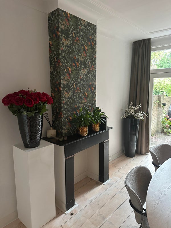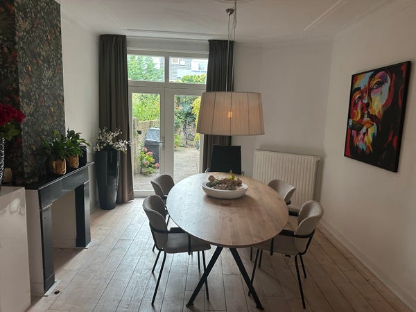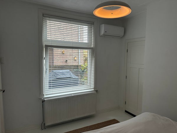 Layout. Ground floor: the entire house has a beautiful granite and wooden floor. The spacious en-suite living room with stained glass windows and French doors to the spacious garden. The neat separate kitchen is fully equipped, such as an extractor hood, 4-burner hob, fridge, oven and dishwasher. On the ground floor is a bedroom with Airco and a extra large bed, the bathroom with sink and shower. The toilet is separate. Furthermore, the entire house is equipped with smart lighting.