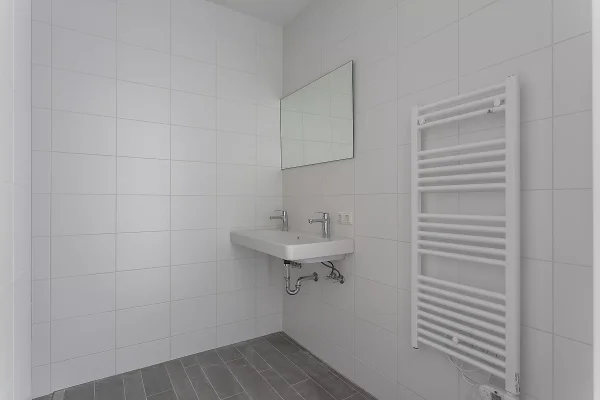 This 2-room apartment on the 5th floor has a living area of 63 m² and features a modern white kitchen equipped with Siemens appliances. The bathroom includes a sink, designer radiator, and shower. Located in De Open Veste in Purmerend, it is surrounded by greenery and near the city center, with easy access to the train station and the A7 motorway. The apartment has an eastern balcony and includes a parking space in the garage and a separate storage room. The monthly rent is € 1,415, plus € 55 service costs. The area offers tranquility, water, and various amenities, while city life is just around the corner.