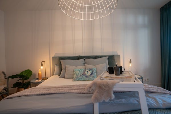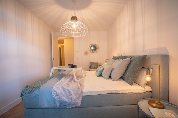 The apartment has two bedrooms. The largest bedroom is spacious enough for a double bed and a wardrobe. The second room is ideal as a home office, hobby room, or guest room.