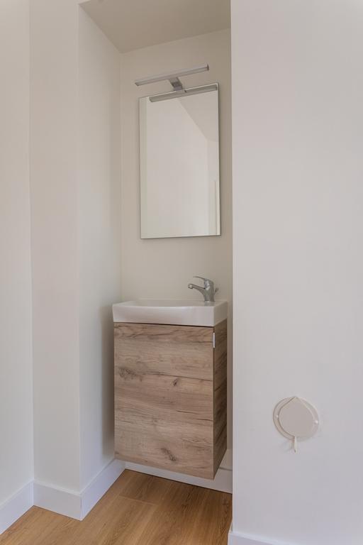 Furthermore, this floor offers two comfortable bedrooms with their own washbasin and built-in closets. These rooms are spacious and provide ample space for a good night's sleep and relaxation. The large windows provide natural light and beautiful views. Whether you use the bedrooms as peaceful retreats or inspiring workspaces, they offer versatile options to suit your needs.