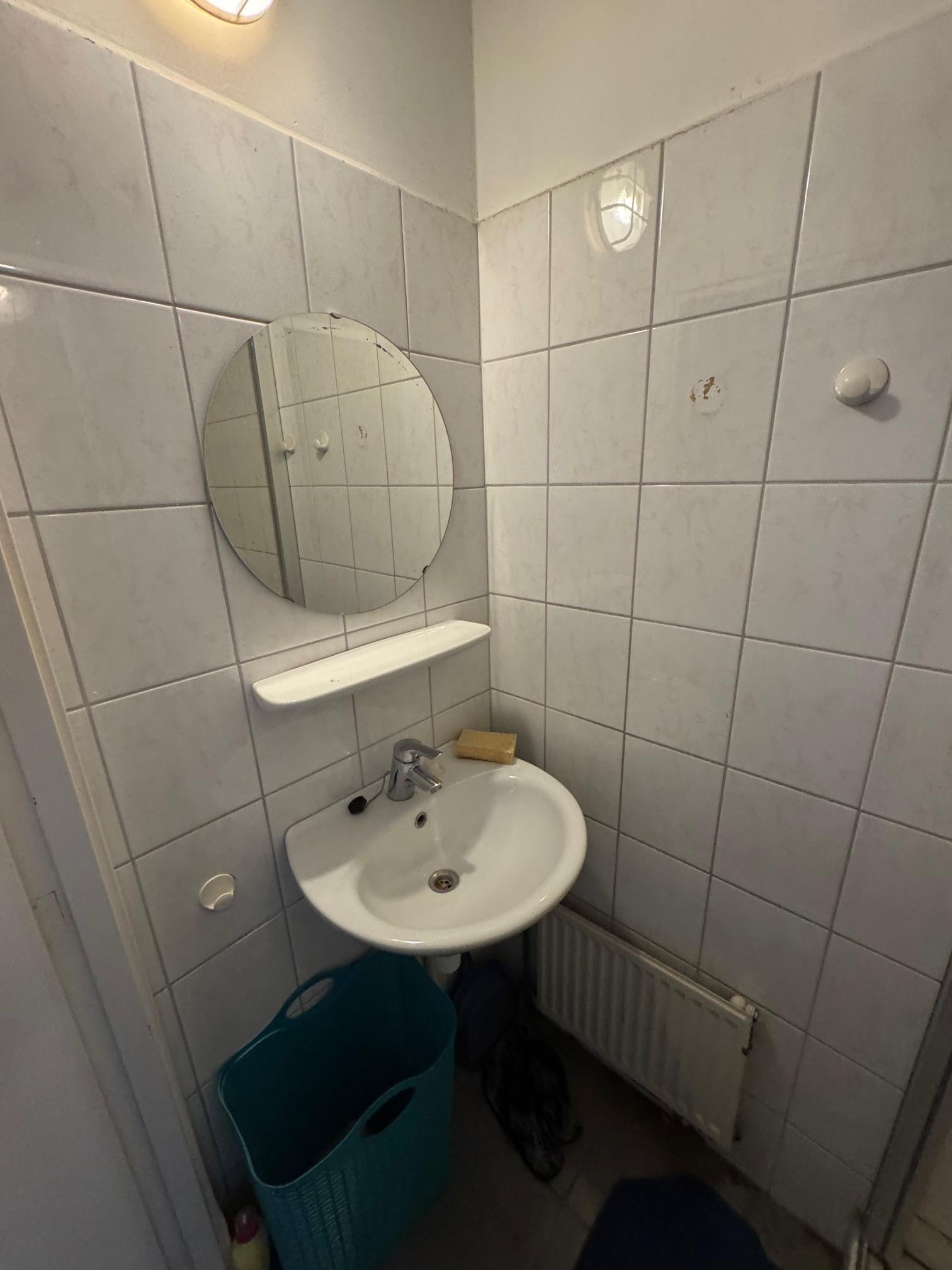 This centrally located student apartment is available immediately and features a private living room and bedroom. With an area of approximately 13 m², it is suitable for one person. The rent is € 487.18 per month, including gas, water, and electricity. The apartment has two shared bathrooms and two toilets, while the kitchen is shared with three others. The rental period is set at 24 months, requiring a two-month deposit. Pets and smoking are not allowed. If income is insufficient, parents may act as guarantors. A tenant check will be performed, with no agency fees for the tenant.
