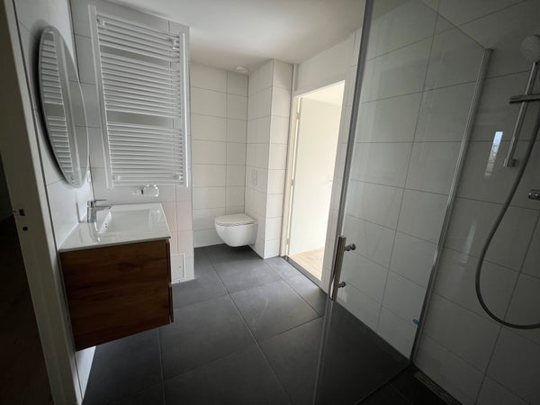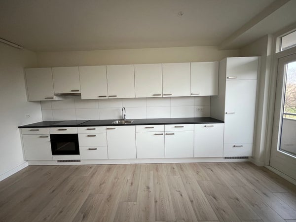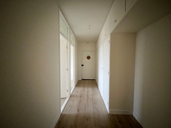 The spacious property is located on the 3rd floor of a well-maintained complex. Upon entering, you will find the letterboxes and access to the private storage room AND free parking space on the rear deck of the building. Enter the long hall which gives you access to all rooms. Immediately upon entering, you will find the first two bedrooms at the front of the house. Further on, you will find the separate brand-new kitchen, which is fully equipped. From the modern kitchen, you will also find the utility room for extra storage! Both from the hall and the third bedroom, you can walk to the renovated bathroom with walk-in shower and toilet. In the hall, you will find a separate toilet. The mega living room (55m2) can be divided to create an extra (4th) bedroom.