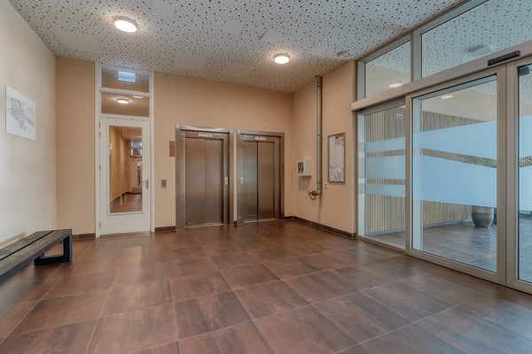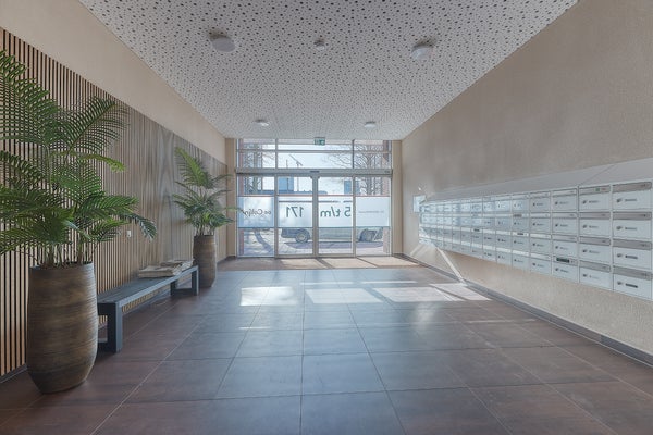 Ground floor. At street level you will find the neat and well-maintained entrance of the apartment complex, equipped with an intercom panel and mailboxes. The impressive central hall provides access to both the elevator and the staircase. By elevator or stairs you reach the 8th floor, where this beautiful apartment is located.