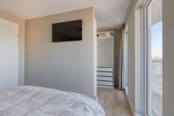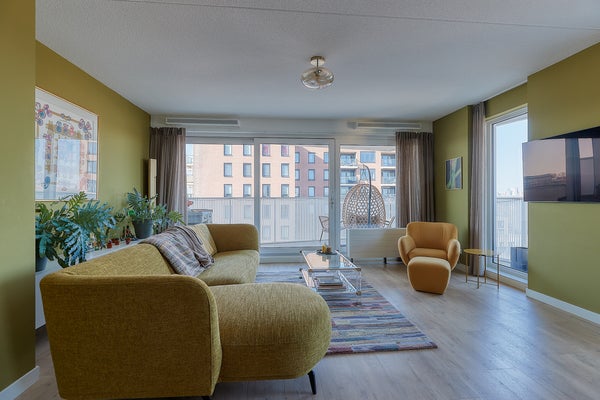 In the modern and comfortable apartment complex De Colijn, located in the heart of Rijswijk, you will find this spacious and contemporary apartment on the 8th floor. The property features a generous living-dining room with an open kitchen, two well-sized bedrooms, a study room, and a modern bathroom with a walk-in shower. Thanks to its A+ energy label, the apartment is also highly energy efficient. Here you will live comfortably, with plenty of natural light and a beautiful view. In short: living here is pure enjoyment. Don’t wait any longer and schedule a viewing today!