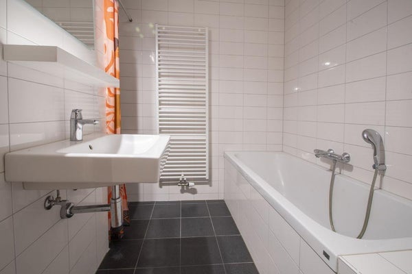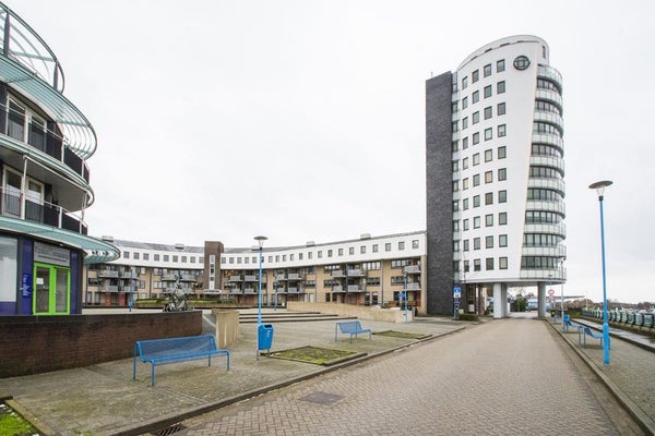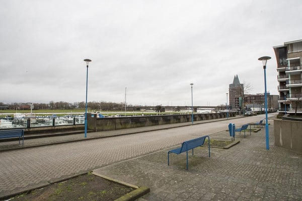 On the skyline of Roermond, this ground-floor apartment is positioned by the water with views of the Maas and the marinas. It features a private entrance, a spacious living room of approximately 30 m², a semi-open kitchen with modern appliances, two bedrooms measuring 12 m² and 8 m², a bathroom with a bathtub and separate shower, and a south-facing balcony. There is also a separate toilet and a private storage in the basement, along with a designated parking space in the underground garage. Located on a quiet street, just 5 minutes from the center, enjoy a unique location with unobstructed views and good insulation, including roof and wall insulation and double glazing. The apartment has a gas combi boiler from 2010 for heating and hot water.