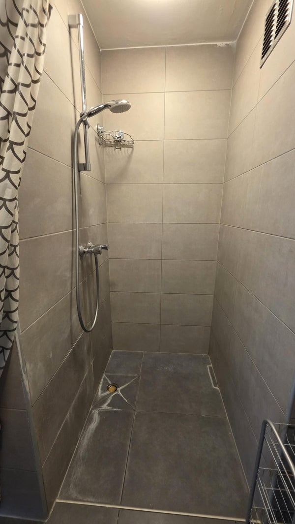 The bathroom has been modernized and features a neat shower and washbasin. There is a separate toilet. Features: