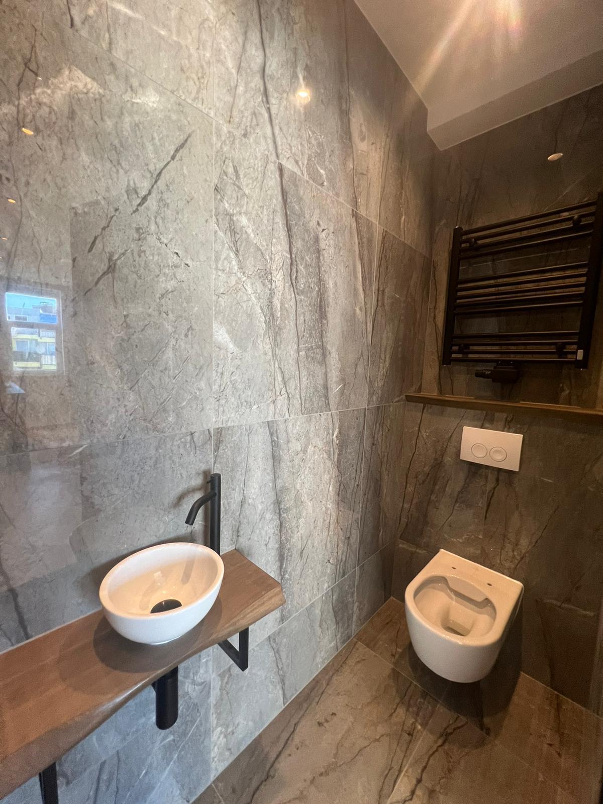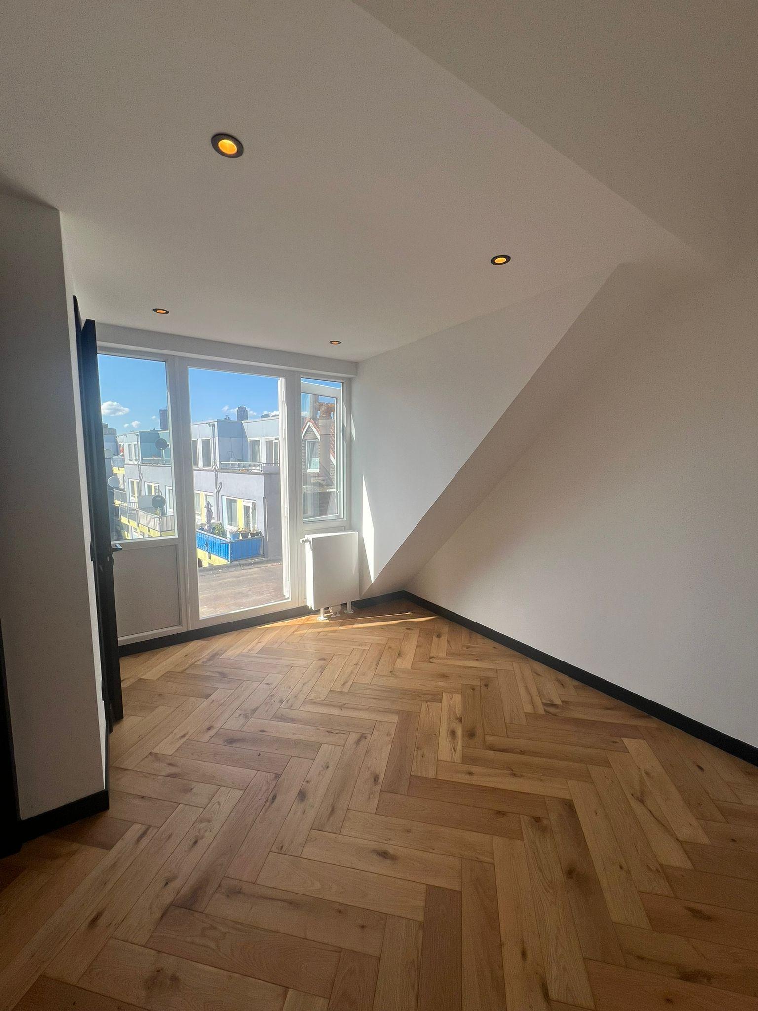 Available for rent is this beautifully renovated apartment in the lively Afrikaanderwijk in Rotterdam. Located on the 1st floor, it features a modern kitchen with an island and a comfortable bedroom that leads to a luxurious bathroom. On the upper floor, there are two additional bedrooms, each with an ensuite bathroom and a balcony. The proximity to shops and supermarkets enhances the vibrant atmosphere of the neighborhood. This presents a unique opportunity for those seeking a turnkey home.