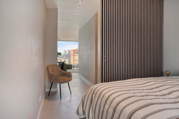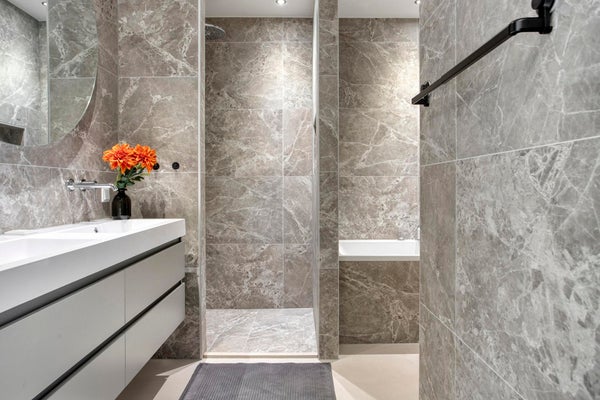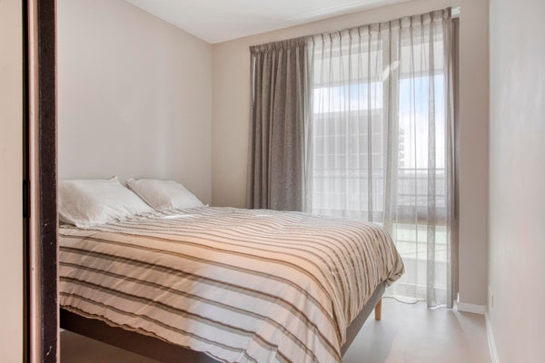 The bedroom is well sized and the bathroom is modern and well maintained. The apartment also includes a separate toilet and storage possibilities.