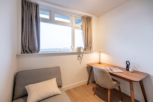 This fully furnished two-bedroom apartment is located within walking distance of Rotterdam Central Station. A comfortable home in a prime location, perfect for anyone looking to live and work in the city for an extended period.