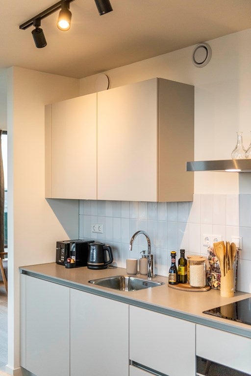 The master bedroom has a modern look and has a king size bed with nightstands and wardrobe. The second bedroom is also from a good size and has a single bed with wardrobe. The third room is furnished with a sleeping sofa en desk, which makes this the perfect guestroom or home office! From here you can also enter the spacious balcony.