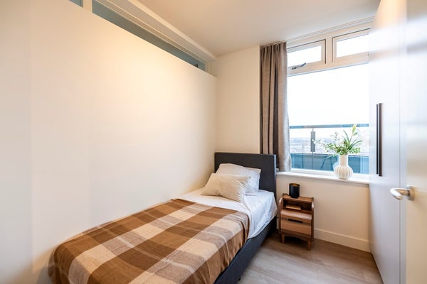 The residence is part of the characteristic UP2 building, where historic charm and modern living comfort come together. Supermarkets, shops, sport facilities, cafés, and cultural venues are all nearby. Rotterdam Central Station is only a 7-minute walk, and the city centre can be reached within 13 minute on foot.
