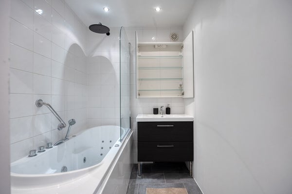 The spacious bedroom is located on the quiet side of the apartment and has a new bed with spacious wardrobe. The second bedroom offers enough space for a guest room or home office.