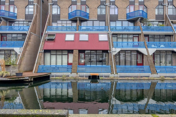 From the living room, you step directly onto the sunny terrace by the water. A wonderful spot to relax, with a stunning view over the calm waters, right in the heart of the city. Here, you can enjoy your morning coffee, summer dinners, or a glass of wine in the evening sun, with the city in the background yet in complete peace and quiet.