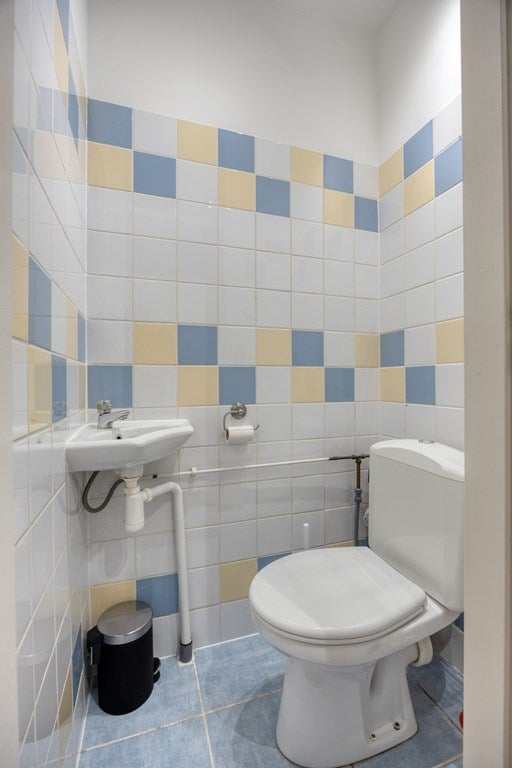 Second floor: You enter through a spacious hallway with access to the spacious and toilet with sink, the meter cupboard, and a practical storage closet where you find the washing machine and dryer. From this hallway you also have access to both bedrooms.