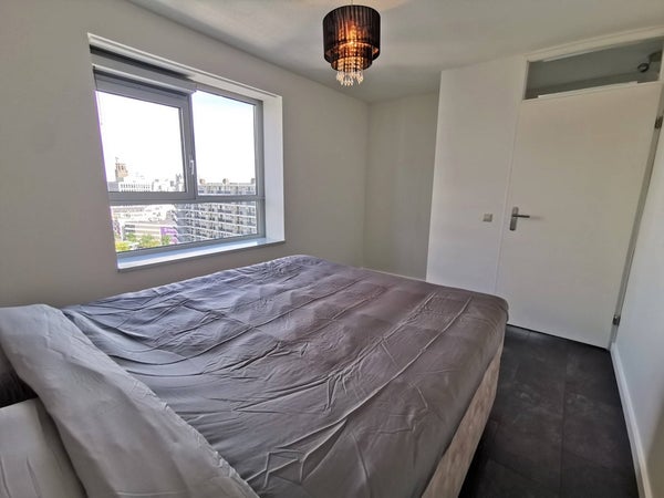 The master bedroom is located at the front of the building and offers a view over the center of Rotterdam. This room has a high-quality SwissSense double bed and a wardrobe.