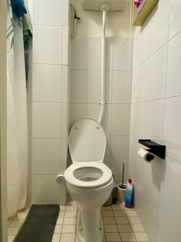 Living room 4,76 x 5,12m incl. washing machine, bedroom 2,8 x 2,72m, kitchen 1,94 x 2,08m and the bathroom 2,3 x 0,83m (with a shower and a toilet)