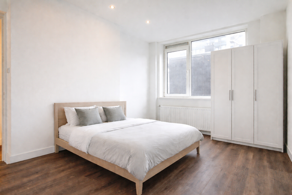 The apartment offers one separate bedroom, providing a calm and private sleeping space. The bathroom is very modern and finished to a high standard, featuring contemporary fittings and a fresh, clean design. A separate modern toilet is also included.