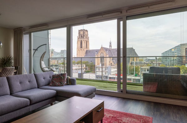 This spacious and furnished 3-bedroom apartment is located in the heart of Rotterdam's city center, on the 4th floor of the iconic Markthal. The apartment offers stunning, unobstructed views of the city and combines comfortable living with a unique, urban experience. The location is ideal, with various shops, specialty stores, and eateries directly below the house, while the entire city center, with its restaurants, cafés, and entertainment venues, is also within walking distance. Furthermore, the house is nearby the university and easily accessible by public transport. Blaak and Beurs metro stations are just a few minutes' walk away, as are tram and bus connections, making all parts of the city easily accessible.