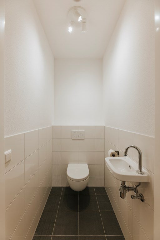 The apartment has two well-sized bedrooms. The modern bathroom is elegantly finished and features luxury sanitary ware. Additionally, there is a separate toilet and a practical laundry room.