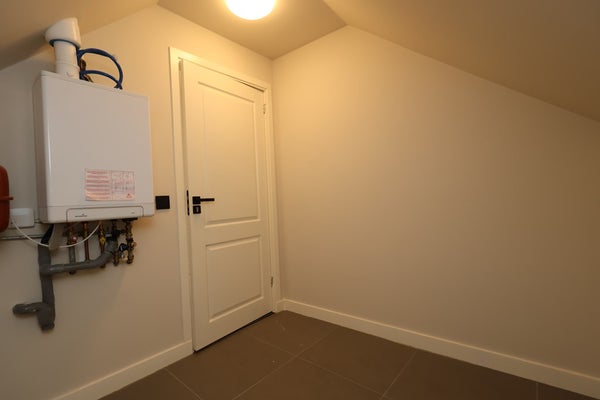 This floor features the spacious living room, filled with natural light thanks to large windows at both the front and rear of the property. The modern open kitchen is fully equipped with a dishwasher, oven, induction cooktop, refrigerator, and freezer. There is also a separate toilet with washbasin. At the rear, you’ll find a west-facing terrace of approximately 6 m².
