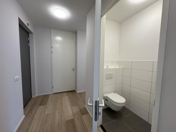 In addition, in the hallway, you will find a separate toilet and a storage room with connections for a washing machine and dryer.