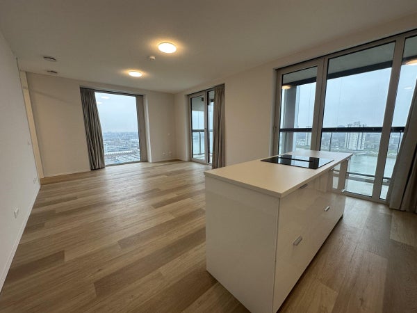 A high-quality, fully furnished 3-room apartment of 86 m², located on the 16th floor of Rotterdam's new iconic building "De Piek" with phenomenal views! From Piekstraat, you can cycle to the city center, the Markthal, or Zuid station in 10 minutes. The water taxi departs practically right outside the door and takes you to the Wilhelminapier or Katendrecht in 5 minutes.