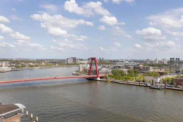Living in The Terraced Tower puts you in the heart of Rotterdam, with the Nieuwe Maas right outside your door. This first-floor apartment at Boompjes 42L offers views over the Maas and benefits from plenty of light through large windows. On pleasant days, you can enjoy your own balcony. The apartment is fully equipped with a built-in kitchen, flooring, and bathroom, so you can move in right away. The Terraced Tower features two-, three-, and four-room apartments, all boasting an excellent location and breathtaking views of Rotterdam's skyline. The city center, with its many shops, restaurants, and the famous Markthal, is just steps away, and excellent connections by bike or on foot make everything easily accessible.