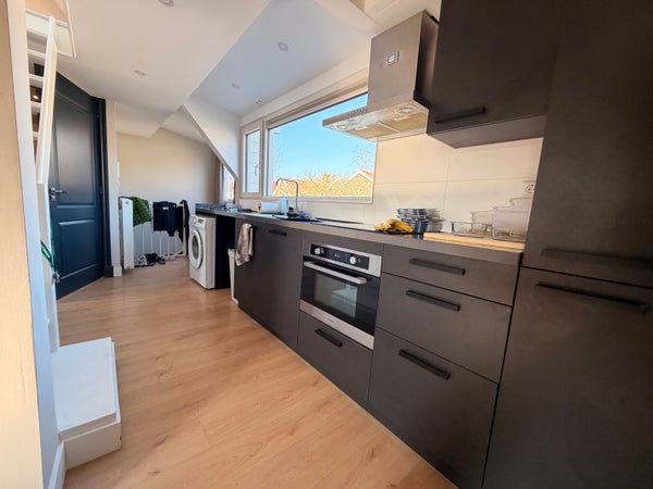 LAY-OUT: Entrance at street level, you enter the common area. You take the stairs to the 2nd floor where the apartment is located. Front door, entrance to the apartment in the hallway. Free access to the living room of approximately 16 m². Spacious semi-open kitchen of approximately 10 m² equipped with a hob, refrigerator, freezer, extractor hood, dishwasher and combi oven. Two bedrooms, one of approximately 10 m² and one of approximately 8 m². Bathroom equipped with a shower, sink and toilet. You take the small staircase to the loft of approximately 5 m² which can be used as, for example, a hobby space.